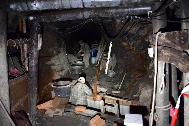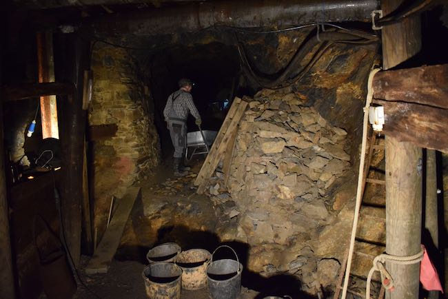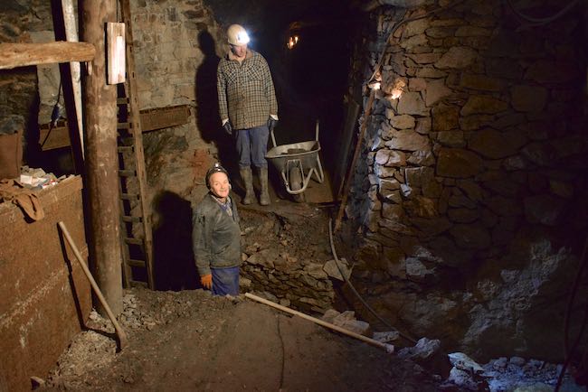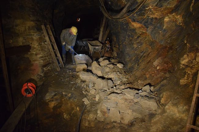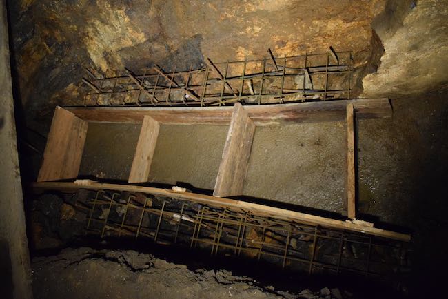 Die Überschrift klingt etwas hochtrabend, doch handelt es sich um solch ein wichtiges Bauwerk. Bei der Freilegung des Hülfe des Herrn Stolln im Jahr 1996 / 97 ist der Verlauf des Stolln söhlig durch den Wismutstolln freigelegt und mit einer einfachen Holzbühne überbaut worden. Dies wurde erforderlich weil die Sohle des Hülfe des Herrn Stolln hier weit über einem Meter tiefer liegt wie die Sohle des Wismutstolln. Darüber konnten gut ein Vierteljahrhundert alle Besucher fahren oder besser verständlich, laufen. Diese Holzbühne hatte sozusagen die Funktion einer Brücke und war auch ähnlich einer solchen aufgebaut. Doch durch neue Ideen und durch einige Zufälle sollte die mittlerweile etwas desolate Überquerung nicht nur ertüchtigt, sondern für ein ganz neues Projekt neu erschaffen werden! Der Bergbauverein selber und durch einige Mitglieder verfügte mittlerweile über eine ganze Menge „rollendes Material“ in Sachen Grubenbahn. Speziell über Hunte, Plattenwagen und Loks aus der Fertigungslinie des BAB Aue, dem Bergbau-Ausrüstungs-Betrieb der ehemaligen SDAG WISMUT.