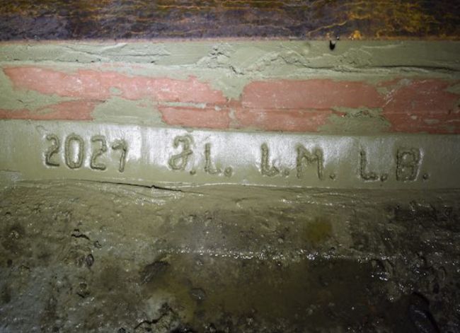 Die Initialien der Erbauer der Brücke. Damit waren wir fertig, bevor in Dresden die Carola- Brücke eingefallen ist.